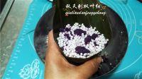 12.取3片芦叶,对折,形成个漏斗状,放入紫薯西米压实