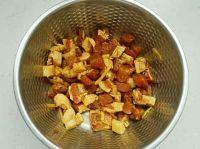4.将糯米放入生抽,老抽,腌制二十分钟左右,五花肉取出待用