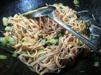 3.接着,合入已清洗好的绿豆芽,加适量的生抽。