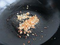 6.把大蒜用热油炒出香味,关火把剩下的一半大蒜末加进去拌均匀