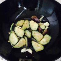 10.爆香锅后下去茄子块翻炒至茄子边微黄。
