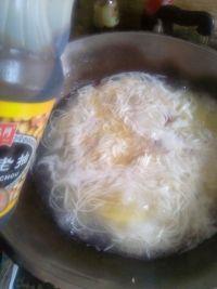 6.水开后,加入挂面,这里由于蒸汽,拍的不清,不过没关系,可以看的到