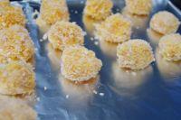 5.4、将蘸好面粉的鸡肉,放入蛋黄中,再蘸一层蛋黄