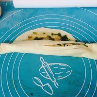 12.做的的手抓饼生胚,放入平底锅,用小火慢煎。